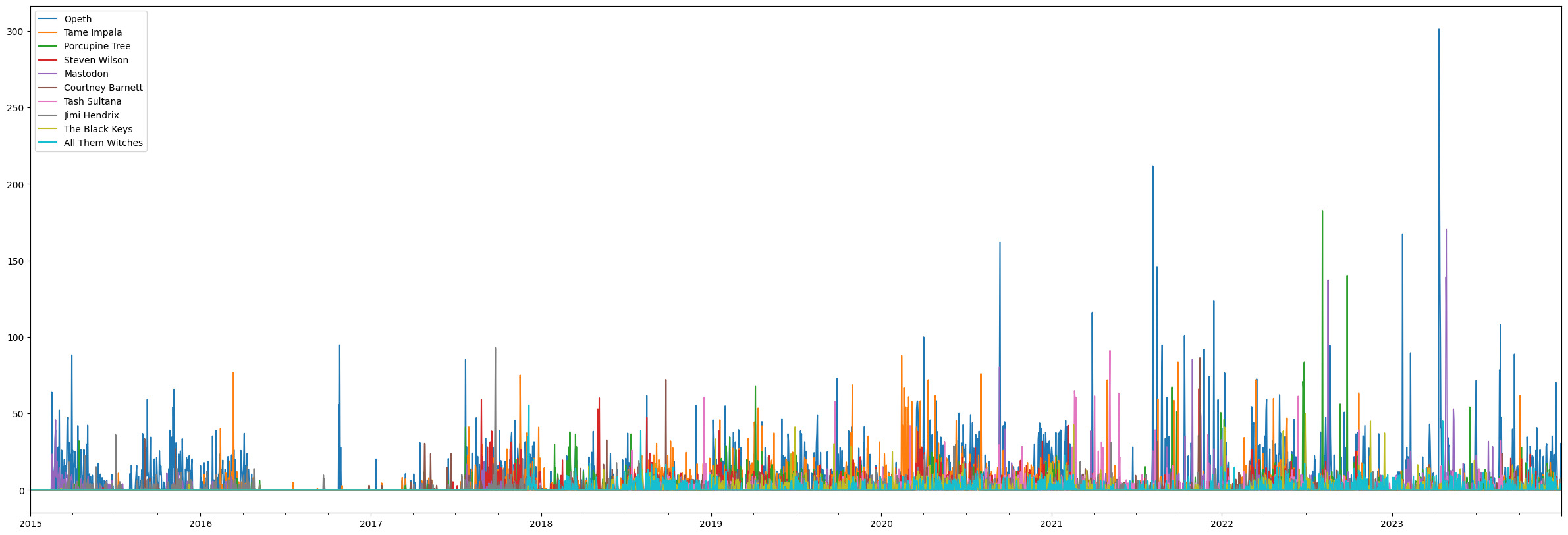 - Unique artists over time